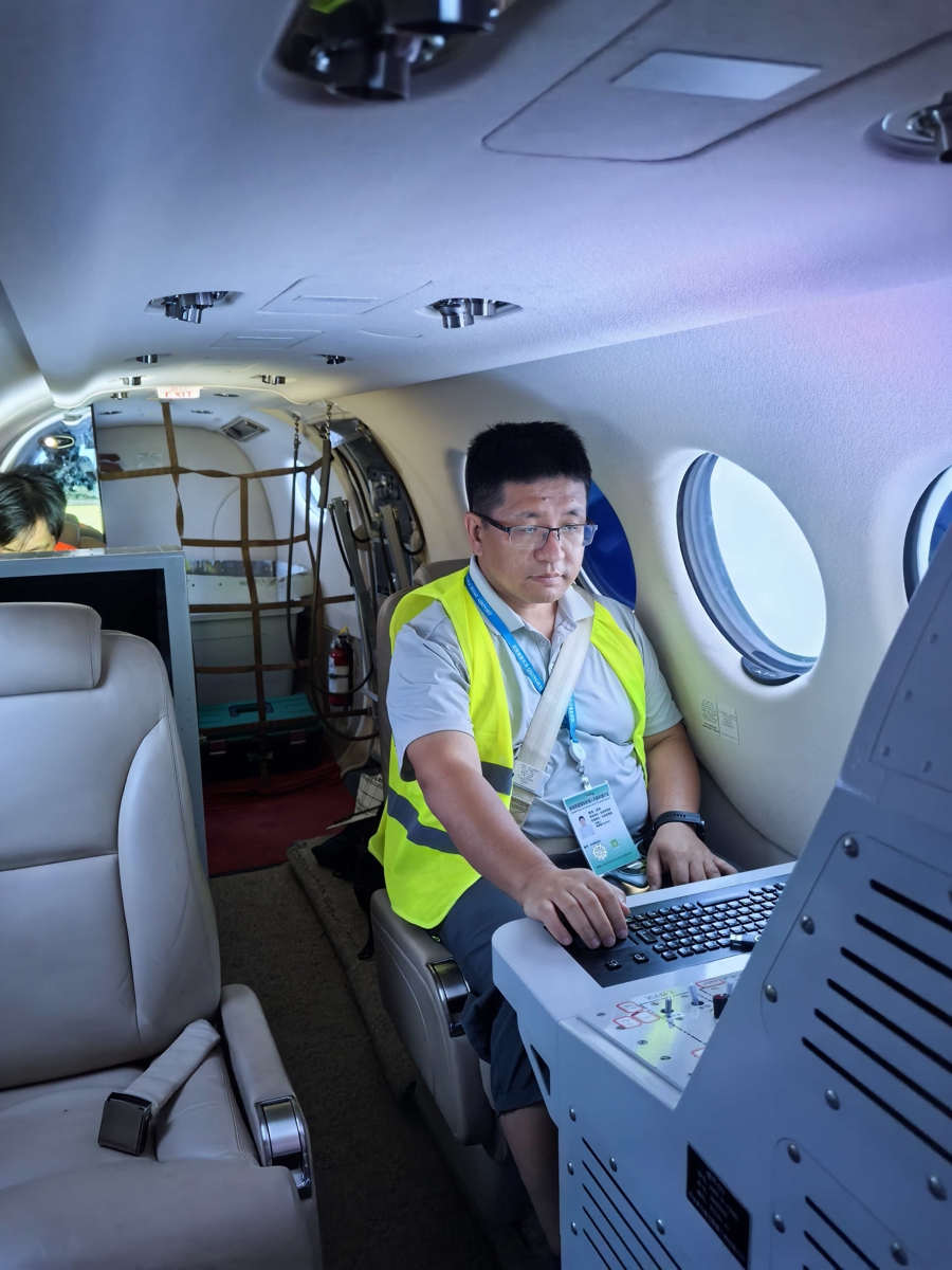 科研人员在飞机上进行观测试验 戴宇凡 摄