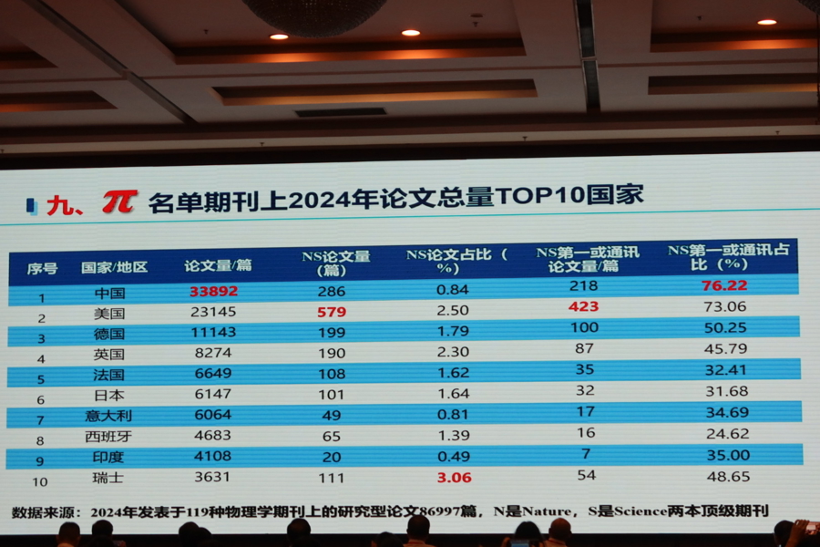 π指数统计物理学领域2024年论文发文量Top10(刘琦/摄)